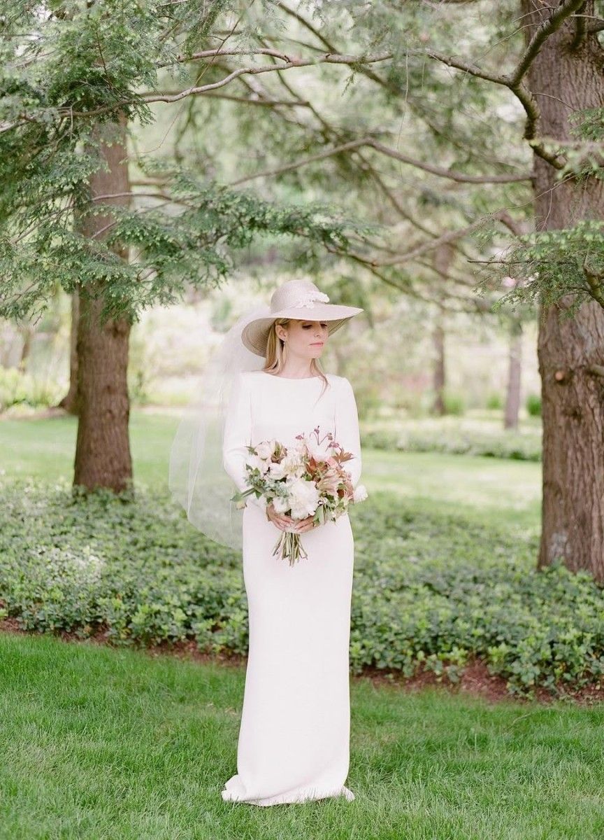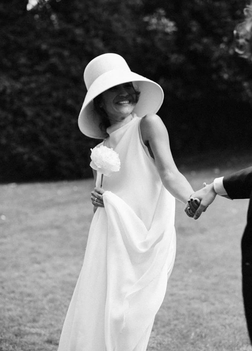 A wide-brimmed wedding hat transformed a classic bridal look into an effortlessly coveted style.