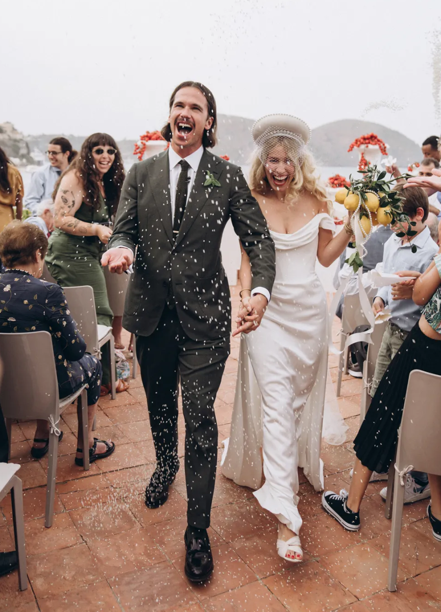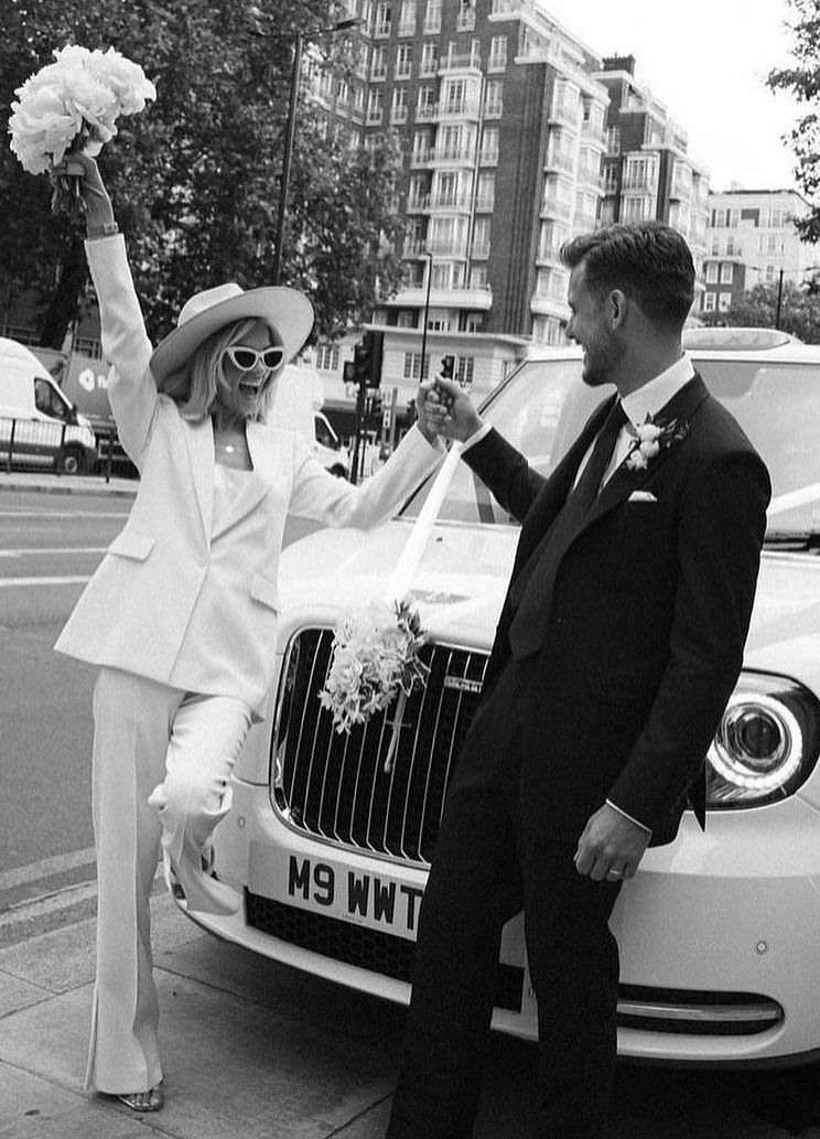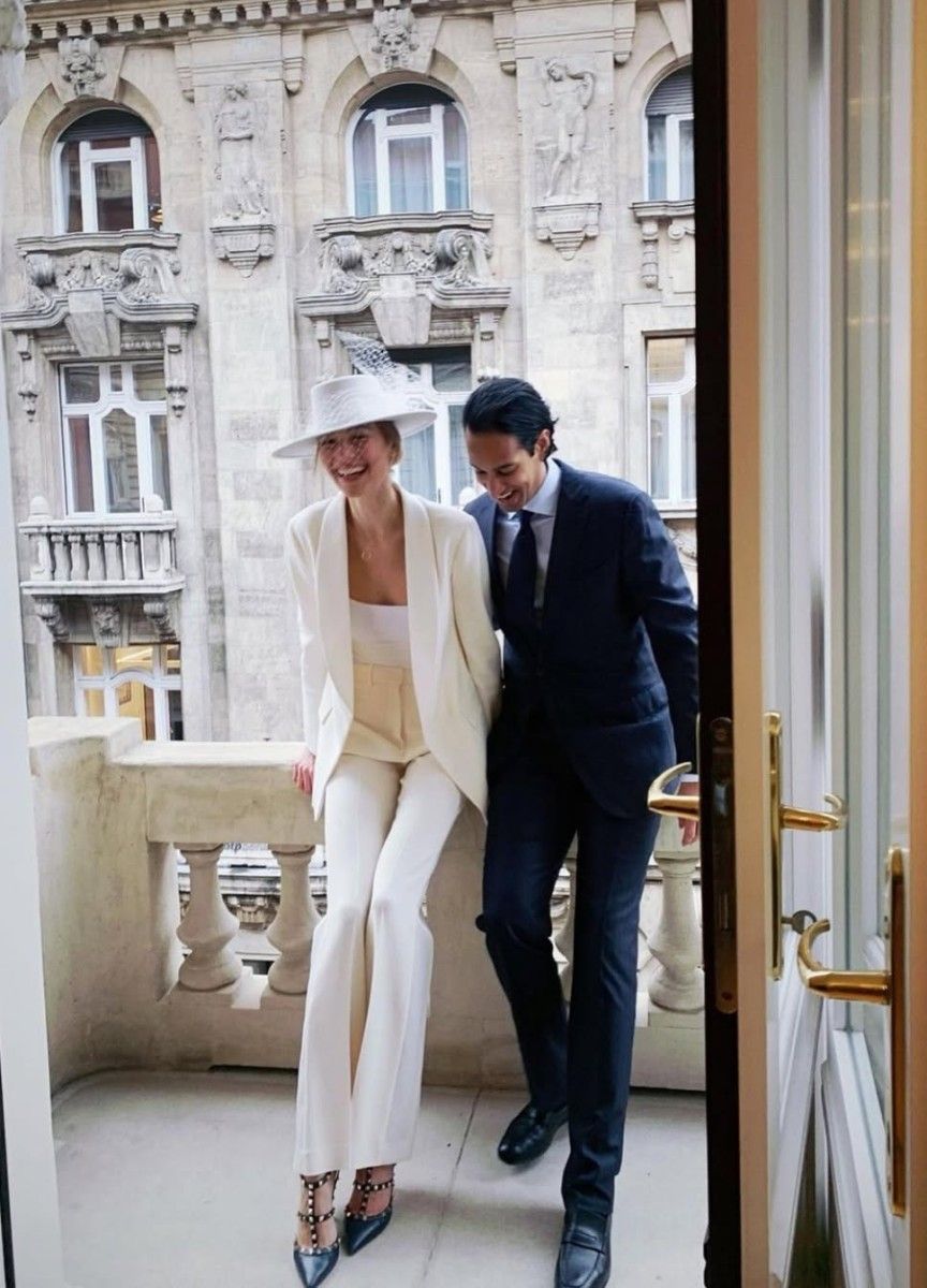 For her intimate wedding, model Vanessa Axente crowned her style with a bespoke wedding hat.