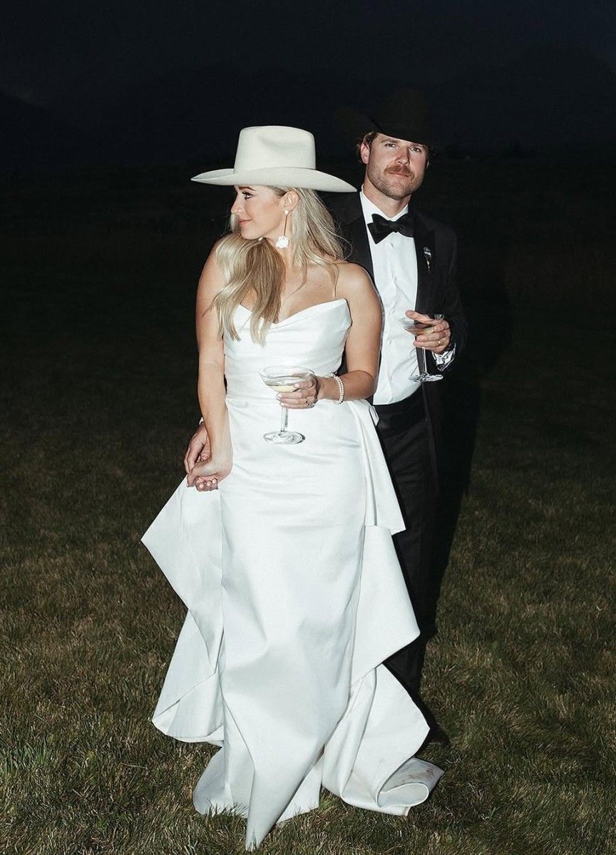 For the reception, this bride slipped into a white cowboy hat to capture the spirit of her country celebration.