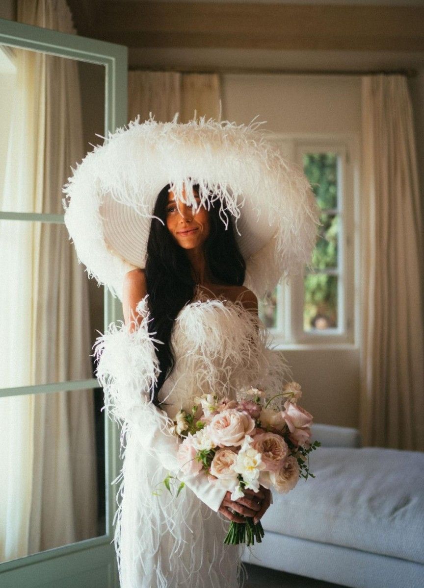 Wedding hats are having a major moment as couples ditch traditional veils for accessories that truly reflect their personality. From celebrities to influencers and stylish brides everywhere, we're seeing everything from dramatically wide-brimmed hats to luxuriously feathered pieces and sleek, tailored styles that transform each look into a crowning achievement. Here are some of our favorite ways real brides made hats the hero of their wedding day style.