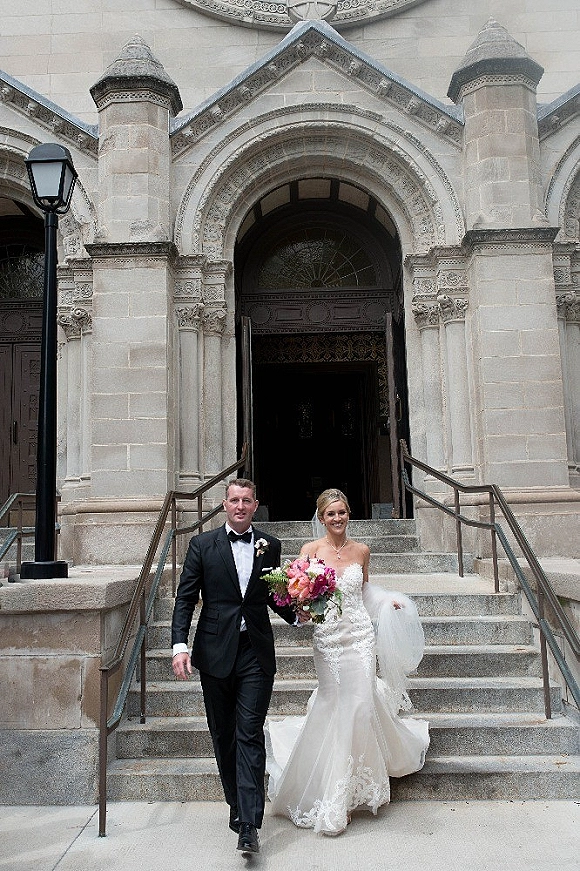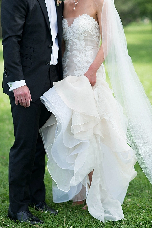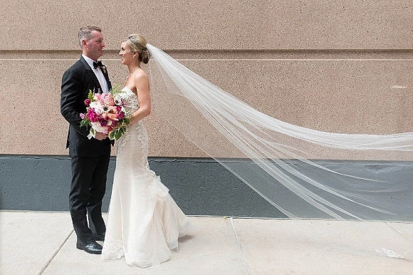 The veil is also by Ines di Santo and the lace was hand sewn by The Alterationist. The dress and veil are from Bella Bianca Bridal.