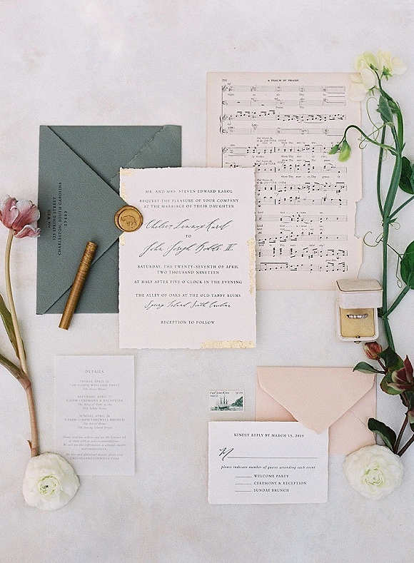 Calligraphy by Prairie & Sage. Day-of paper by Studio R with day-of calligraphy from Dear Jane Designs. Embroidery by OíConnor Inc.