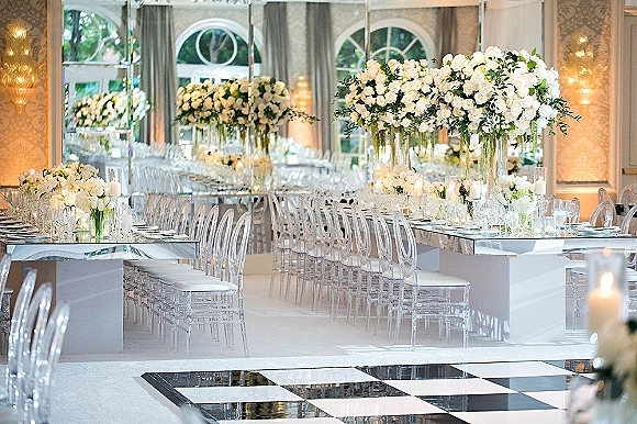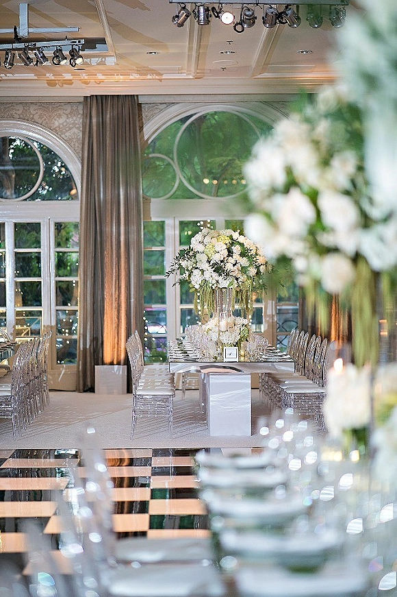 Lighting by MK Lighting & DÈcor. Chairs from Palace Party Rentals with additional rentals from Edge Design DÈcor and linens courtesy of La Tavola Linen. Dancefloor by RB Dancefloor. Photo booth from MirMir.