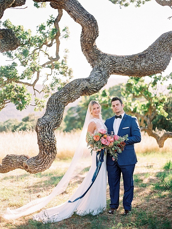 Custom made silk cathedral veil from the Blushing Bird.
