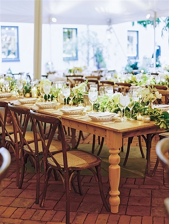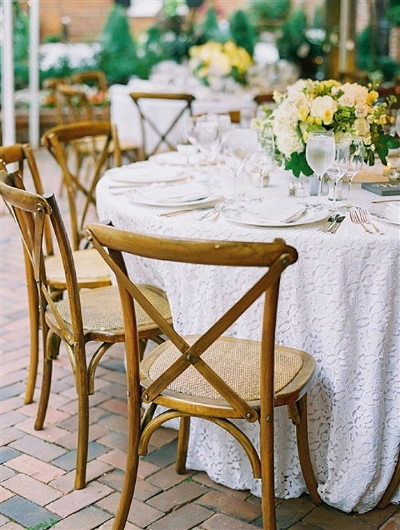 The ceremony was held at the Dahlgren Chapel and officiated by Father Fred Bayler. Tent by Sugarplum Tents with rentals courtesy of La Tavola Linen. Lighting by Frost Lighting.