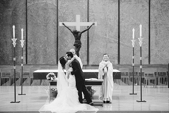 The ceremony took place at the Cathedral of Our Lady of Angels in Downtown Los Angeles! Vintage furniture was from Found Rentals.